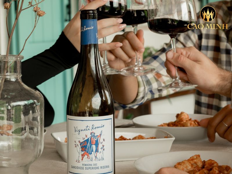 Chai rượu vang Vigneti Romio Romagna Sangiovese Superiore Riserva trở thành thức uống không thể thiếu cho những bữa tiệc hoàn hảo
