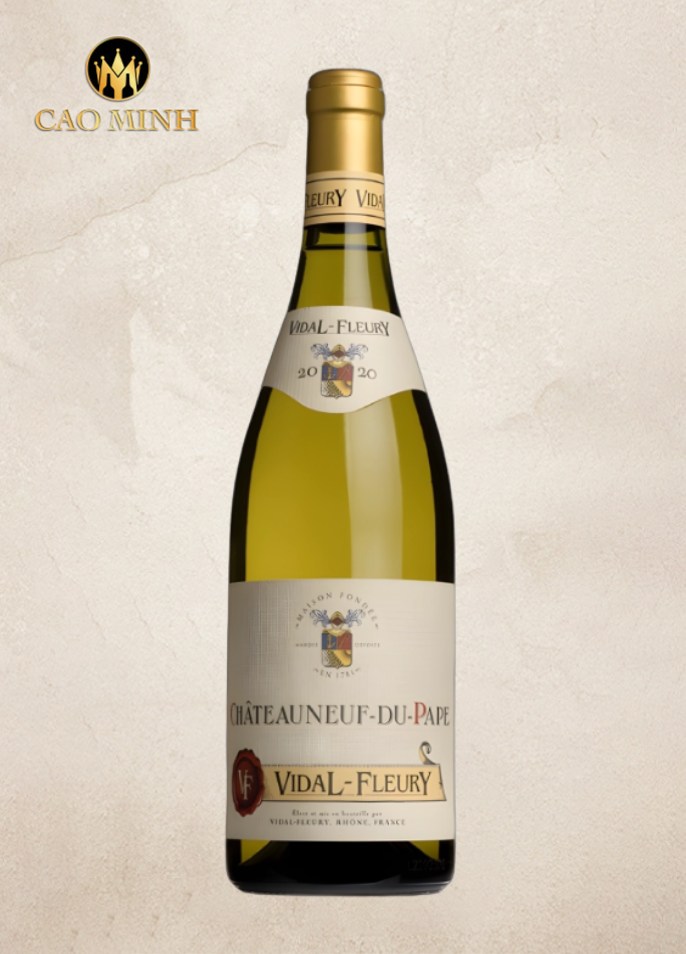 Vidal Fleury Châteauneuf du Pape Blanc là chai vang trắng cao cấp từ Rhône Valley, phối trộn Viognier – Grenache Blanc – Clairette đầy tinh tế. Rượu mang phong cách tròn đầy, hương hoa quyến rũ, trái cây chín mọng hòa cùng nốt vani, đào và cam quýt tinh tế. Cấu trúc mượt, giàu chất khoáng và độ chua hài hòa giúp vang vừa phức hợp vừa dễ thưởng thức. Đây là chai vang lý tưởng cho các món sò điệp, thịt trắng, trái cây hầm hoặc các món Âu thanh lịch.